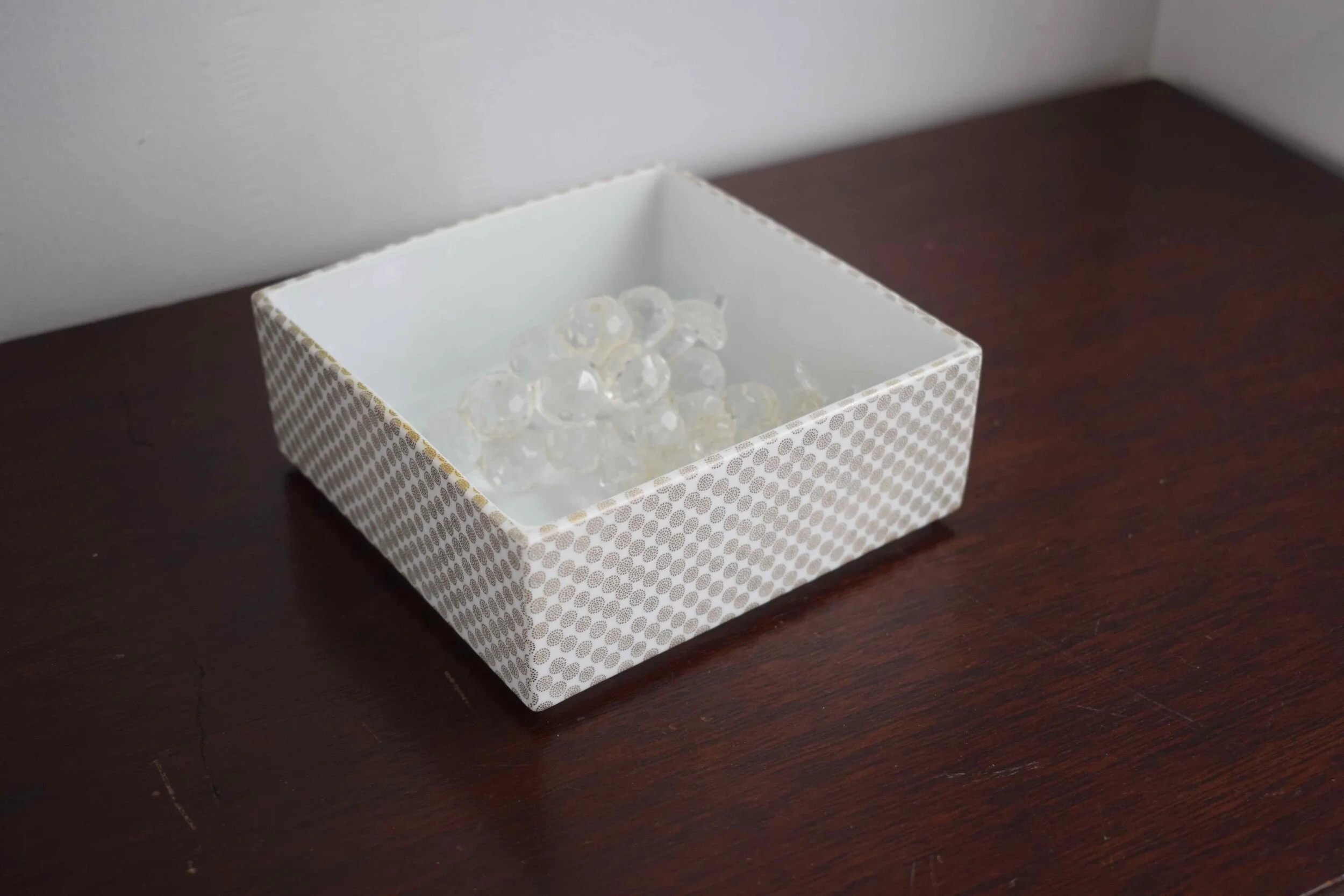 陶器スクエアケース・ホワイト&ドット