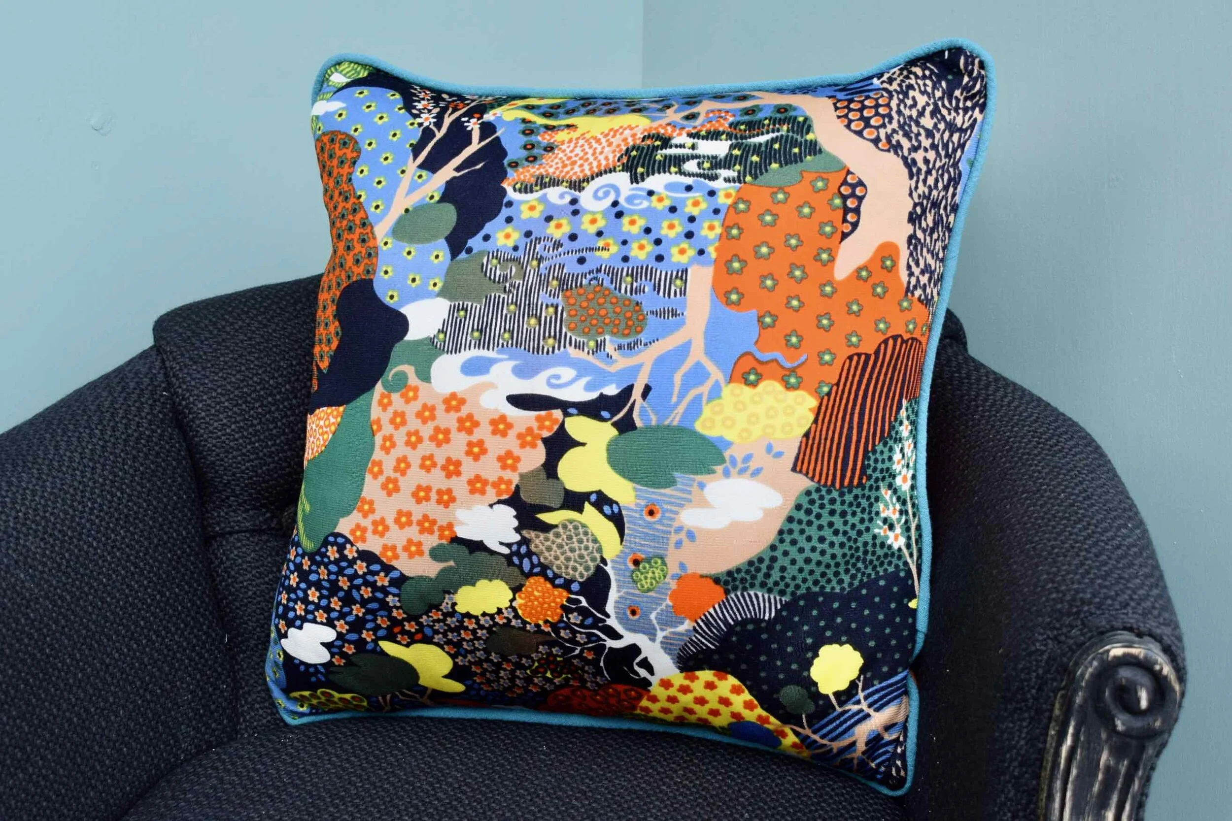 クッション・カラフルテキスタイル 小花パターン